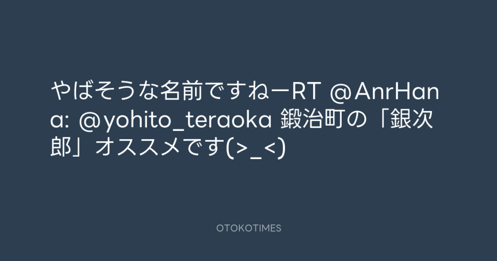 やばそうな名前ですねーRT @AnrHana: @yohito_teraoka 鍛治町の「銀次郎」オススメ... -