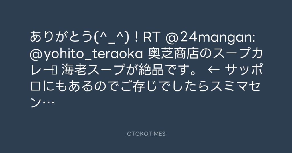 ありがとう(^_^)!RT @24mangan: @yohito_teraoka 奥芝商店のスープカレー♪ 海老ス... -