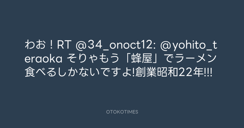 わお!RT @34_onoct12: @yohito_teraoka そりゃもう「蜂屋」でラーメン食べるしか... -