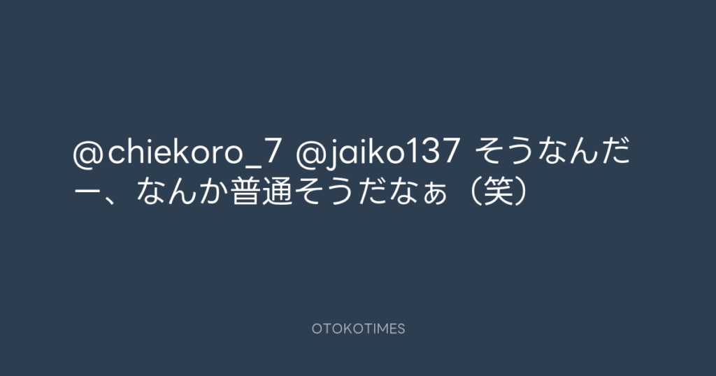@chiekoro_7 @jaiko137 そうなんだー、なんか普通そうだなぁ(笑) -