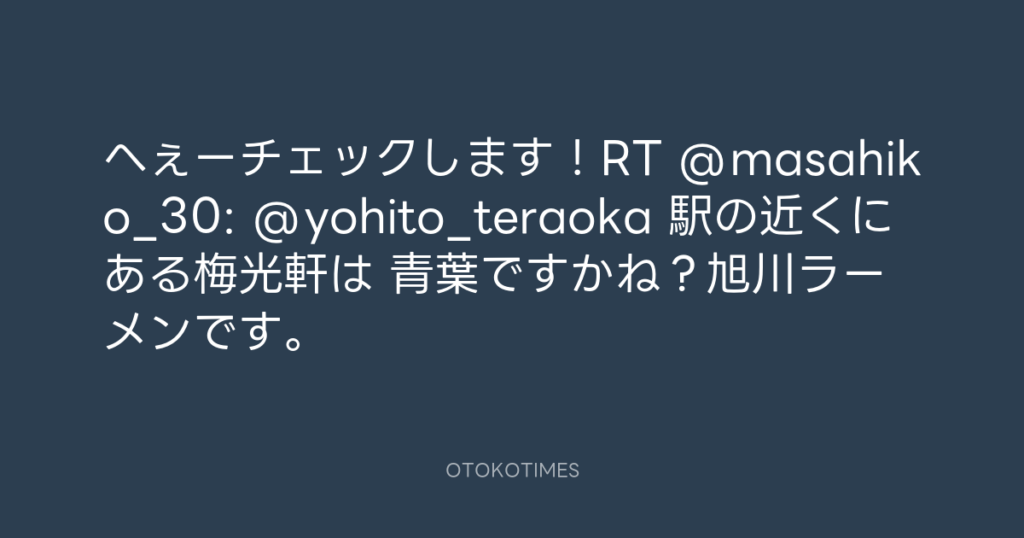 へぇーチェックします!RT @masahiko_30: @yohito_teraoka 駅の近くにある梅光軒は... -