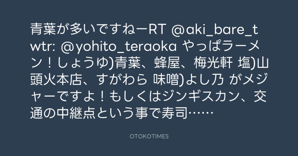 青葉が多いですねーRT @aki_bare_twtr: @yohito_teraoka やっぱラーメン!しょうゆ... -