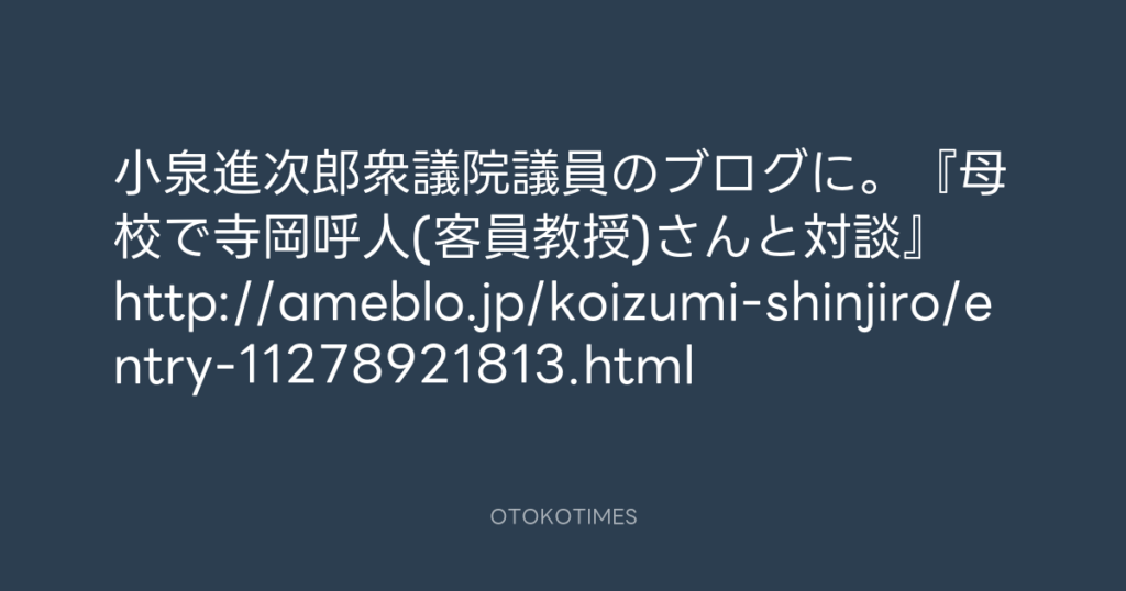 小泉進次郎衆議院議員のブログに。『母校で寺岡呼人(客員教授)さんと対談』 http:... -
