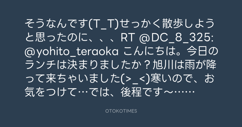 ええー(T_T)RT @soleilyt: @yohito_teraoka 先ほど、民生さんがUst(電話出演)で呼... -