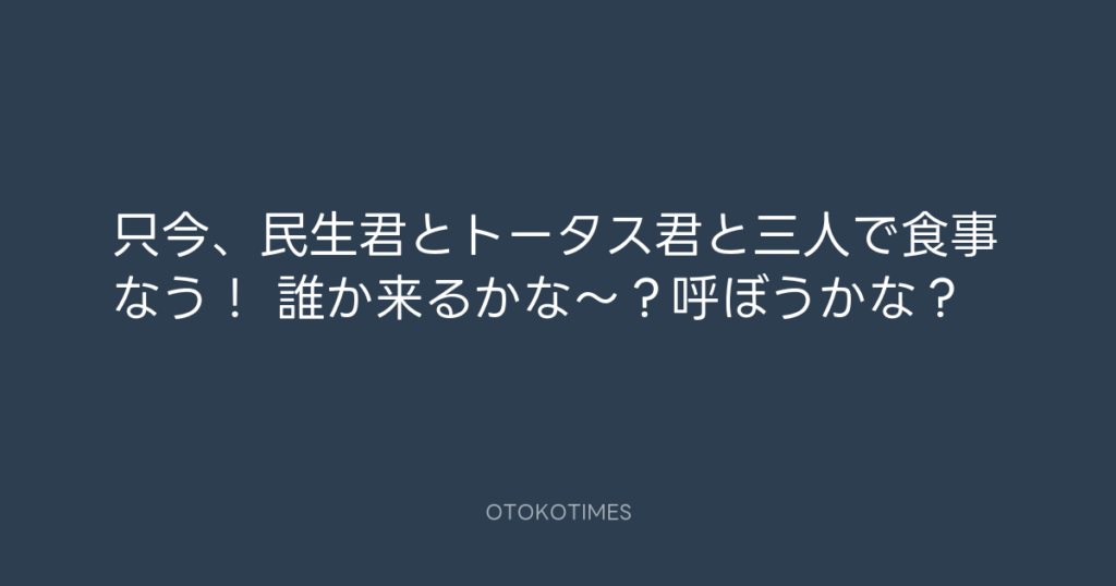只今、民生君とトータス君と三人で食事なう! 誰か来るかな~?呼ぼうかな? -