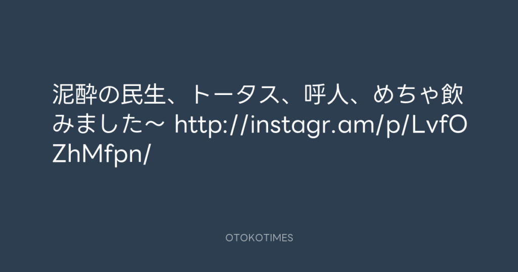 泥酔の民生、トータス、呼人、めちゃ飲みました〜 http://instagr.am/p/LvfOZhMfpn/ -