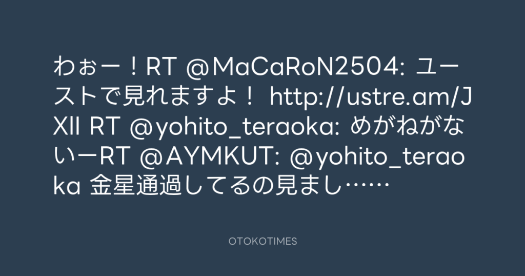 わぉー!RT @MaCaRoN2504: ユーストで見れますよ! http://ustre.am/JXlI RT @yohi... -
