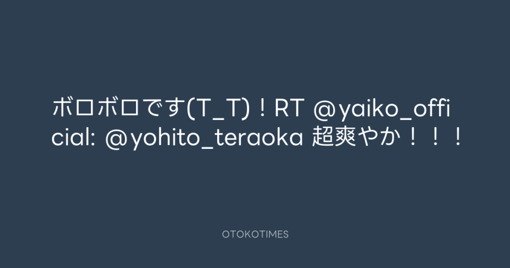 ボロボロです(T_T)!RT @yaiko_official: @yohito_teraoka 超爽やか!!! -