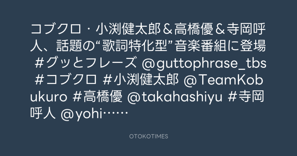 コブクロ・小渕健太郎&高橋優&寺岡呼人、話題の“歌詞特化型”音楽番組に登場 #グ...