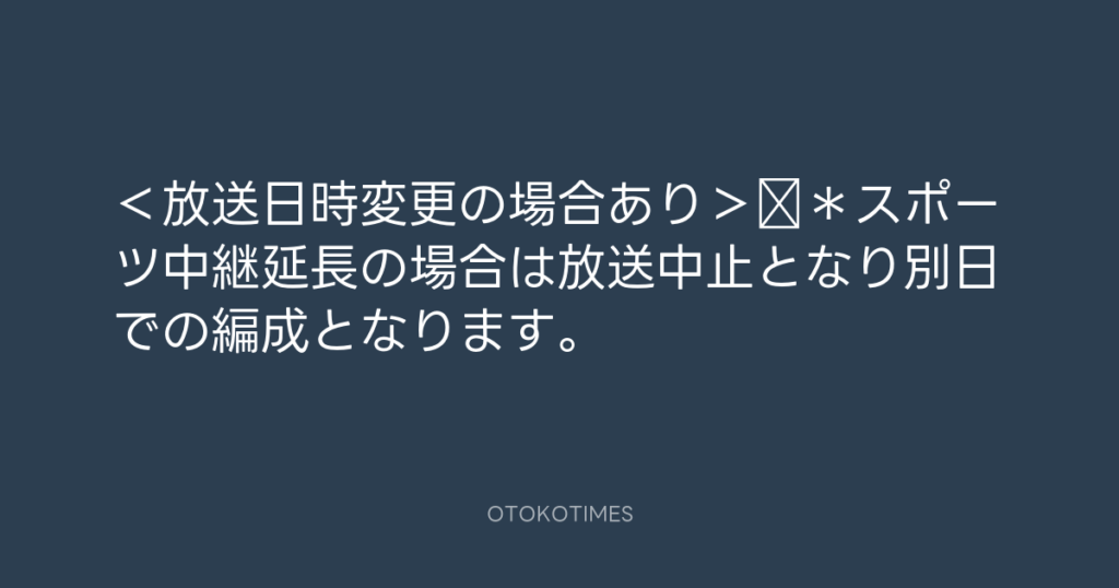 <放送日時変更の場合あり> *スポーツ中継延長の場合は放送中止となり別日での編... -