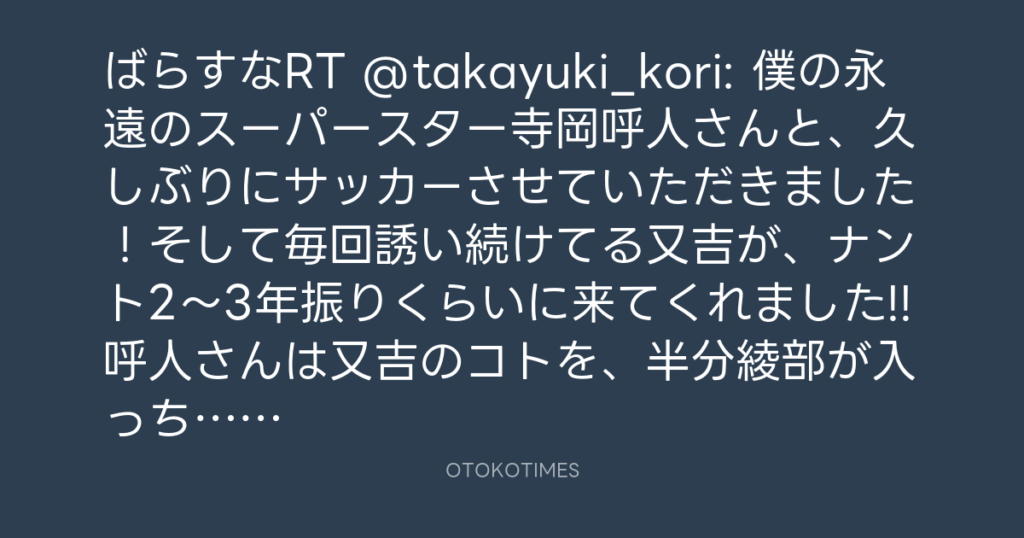 ばらすなRT @takayuki_kori: 僕の永遠のスーパースター寺岡呼人さんと、久しぶりに... -