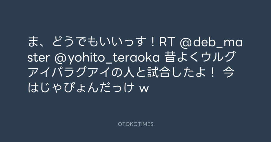 ま、どうでもいいっす!RT @deb_master @yohito_teraoka 昔よくウルグアイパラグア... -
