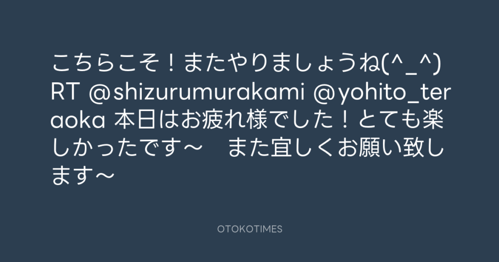 こちらこそ!またやりましょうね(^_^)RT @shizurumurakami @yohito_teraoka 本日は... -