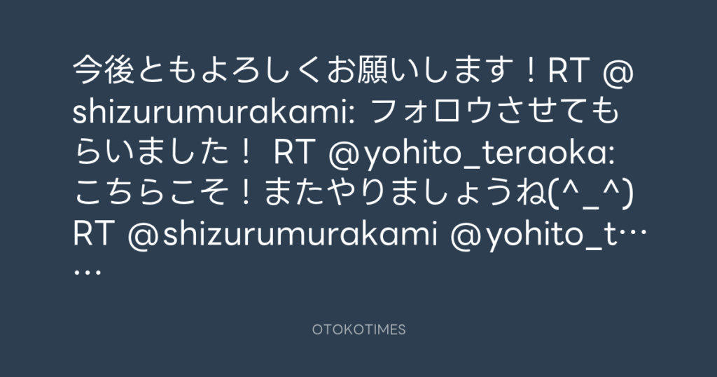 今後ともよろしくお願いします!RT @shizurumurakami: フォロウさせてもらいました... -