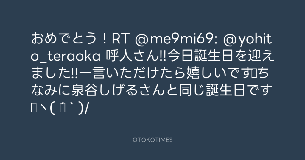 おめでとう!RT @me9mi69: @yohito_teraoka 呼人さん!!今日誕生日を迎えました!!一... -