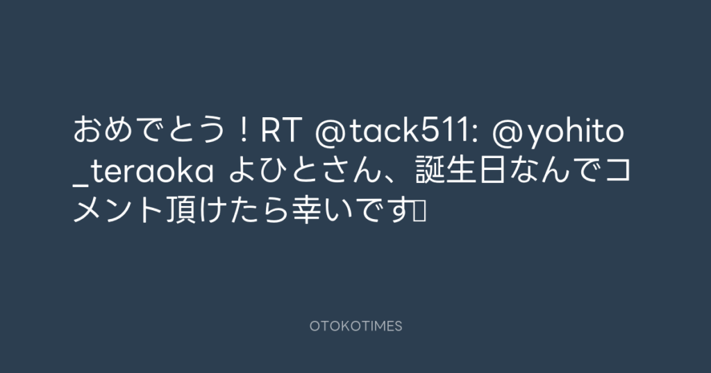 おめでとう!RT @tack511: @yohito_teraoka よひとさん、誕生日なんでコメント頂け... -