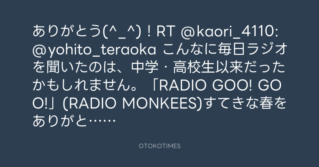 ありがとう(^_^)!RT @kaori_4110: @yohito_teraoka こんなに毎日ラジオを聞いたの... -