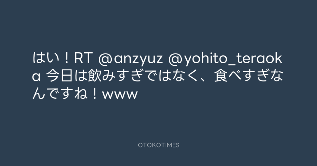 はい!RT @anzyuz @yohito_teraoka 今日は飲みすぎではなく、食べすぎなんですね!www -