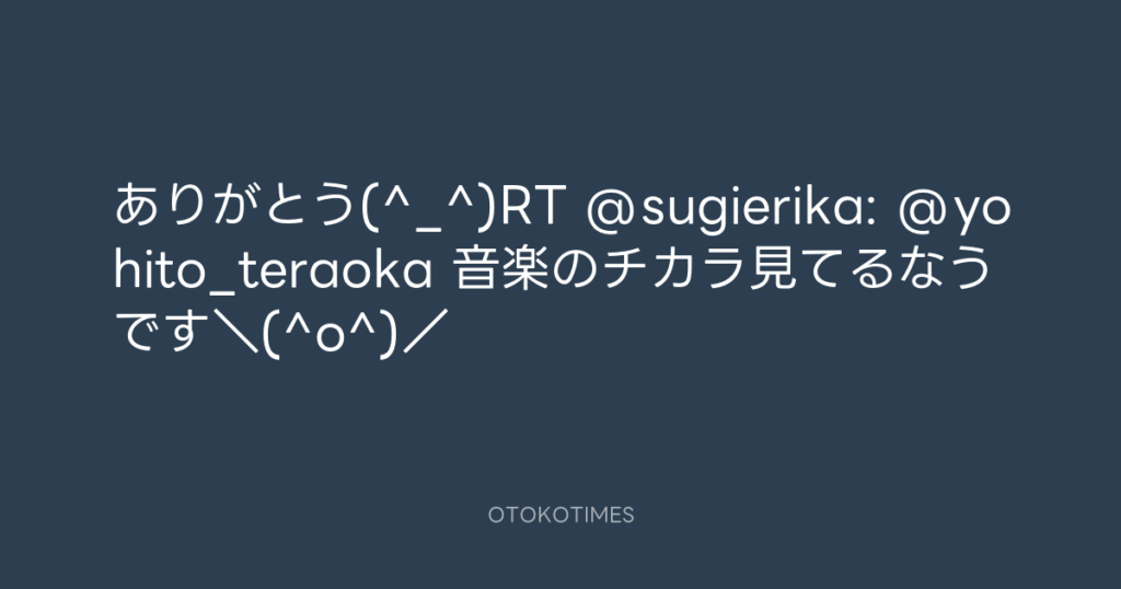 ありがとう(^_^)RT @sugierika: @yohito_teraoka 音楽のチカラ見てるなうです\(^o... -