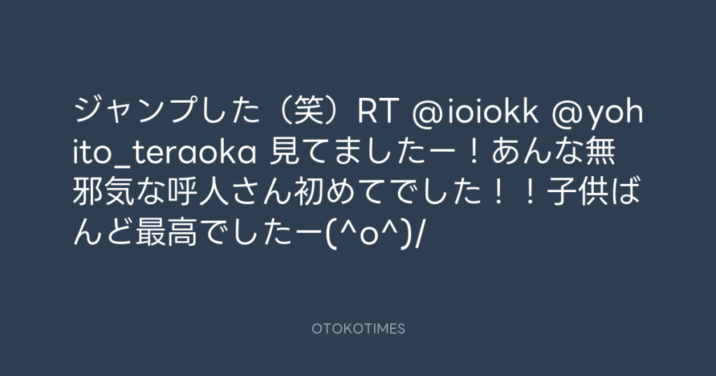 ジャンプした(笑)RT @ioiokk @yohito_teraoka 見てましたー!あんな無邪気な呼人... -