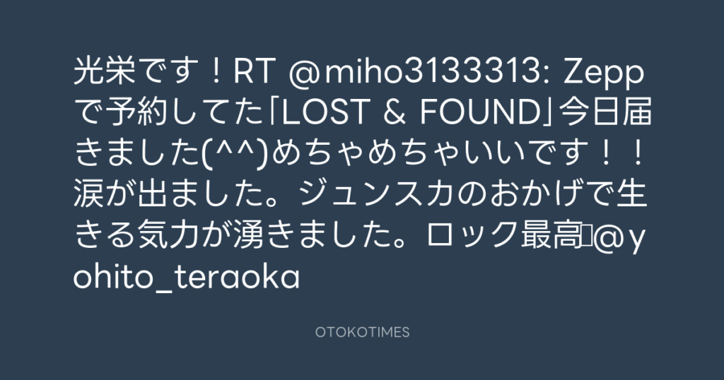 ありがとう(^_^)!RT @iminonaisekai: @yohito_teraoka LOST&FOUND聴きました...