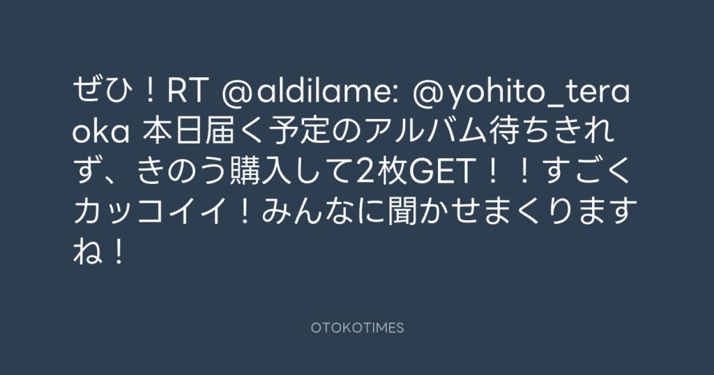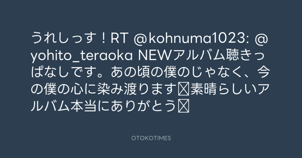 うれしっす!RT @kohnuma1023: @yohito_teraoka NEWアルバム聴きっぱなしです。あ... -