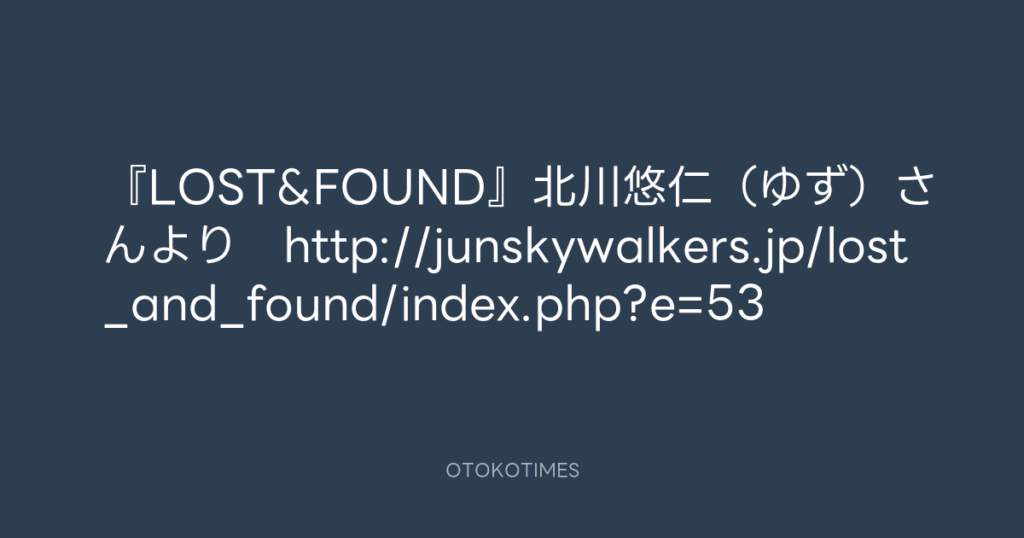 『LOST&FOUND』北川悠仁(ゆず)さんより http://junskywalkers.jp/lost_and_... -