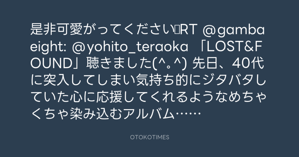 是非可愛がってください☆RT @gambaeight: @yohito_teraoka 「LOST&FOUND」聴き... -