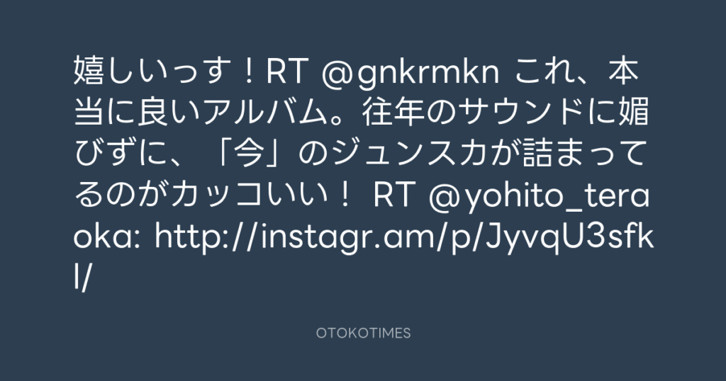 嬉しいっす!RT @gnkrmkn これ、本当に良いアルバム。往年のサウンドに媚びずに、... -