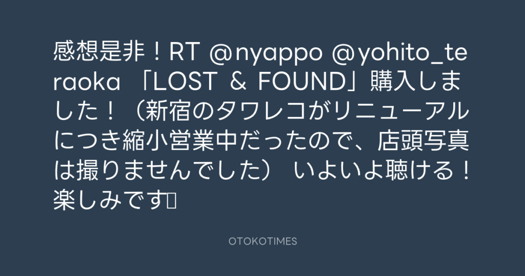 感想是非!RT @nyappo @yohito_teraoka 「LOST & FOUND」購入しました!(新宿の... -