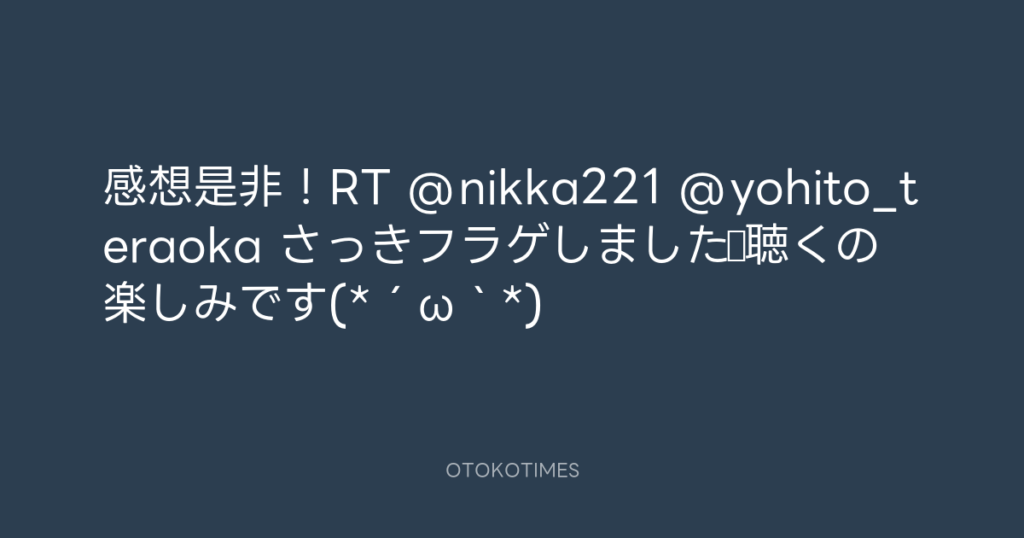 感想是非!RT @nikka221 @yohito_teraoka さっきフラゲしました♪聴くの楽しみです(... -