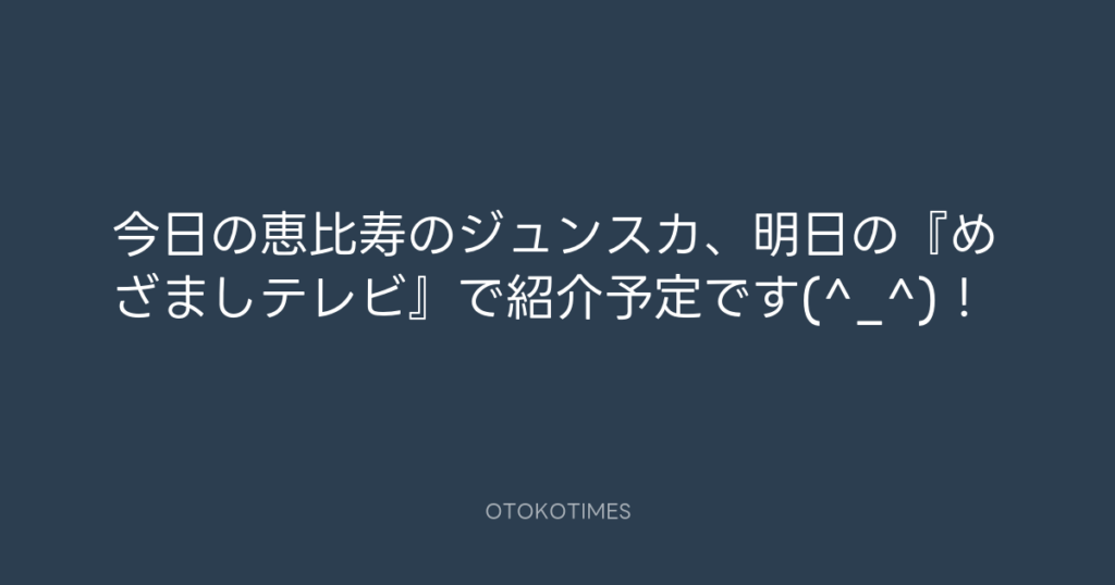 今日の恵比寿のジュンスカ、明日の『めざましテレビ』で紹介予定です(^_^)! -