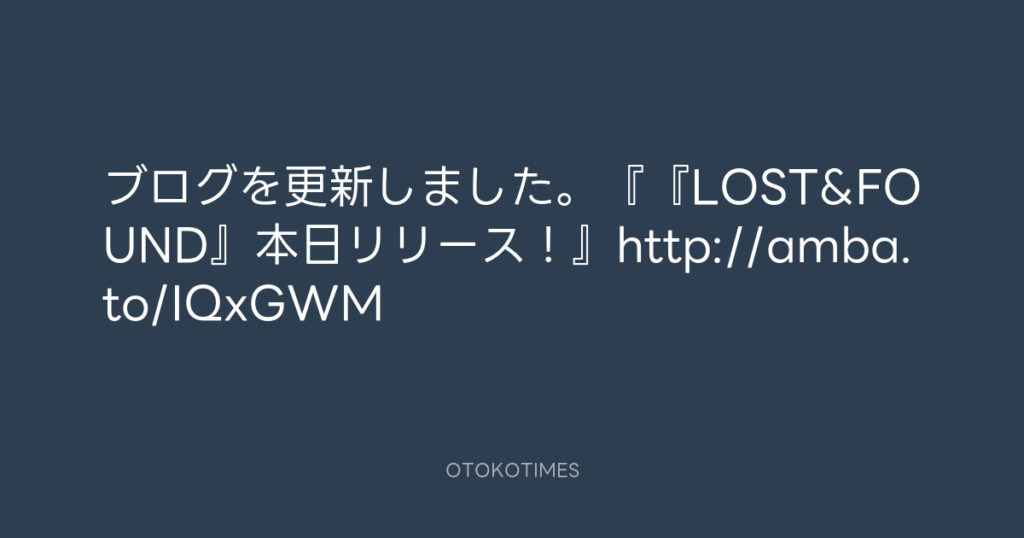 ブログを更新しました。『『LOST&FOUND』本日リリース!』http://amba.to/IQxGWM -
