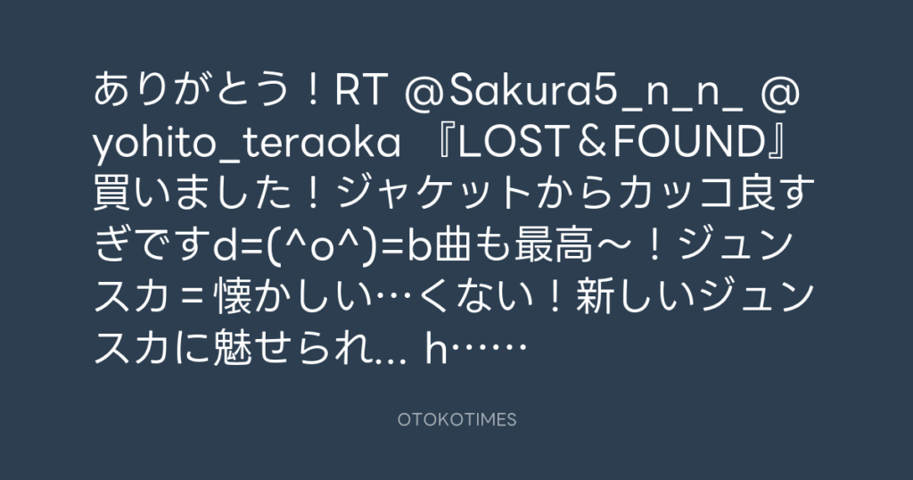 ありがとう!RT @Sakura5_n_n_ @yohito_teraoka 『LOST&FOUND』買いました!ジャ... -