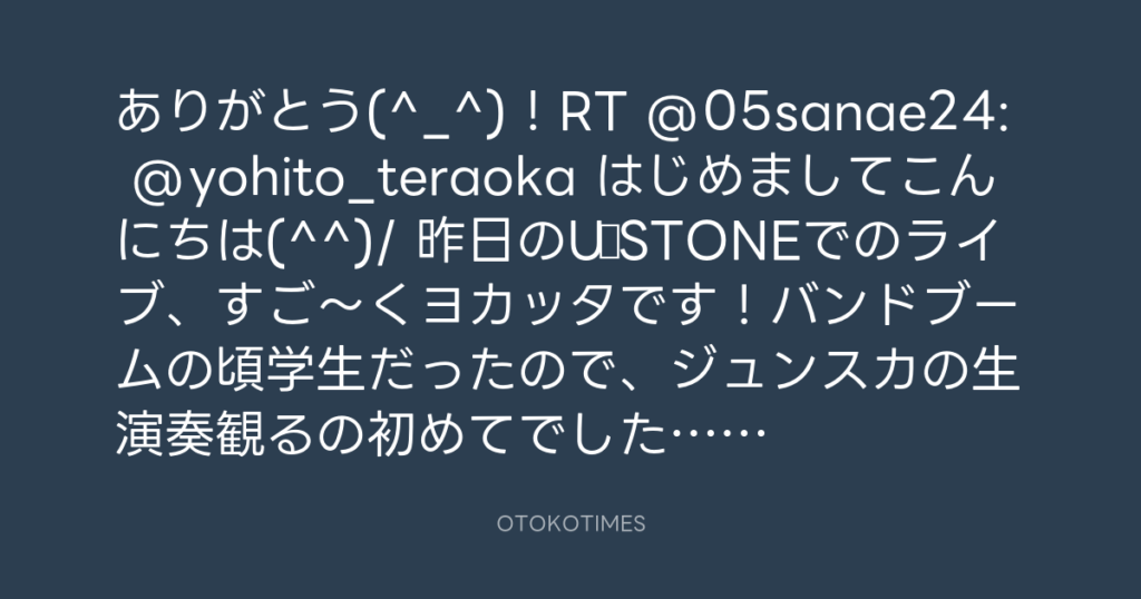 ありがとう(^_^)!RT @05sanae24: @yohito_teraoka はじめましてこんにちは(^^)/ ...