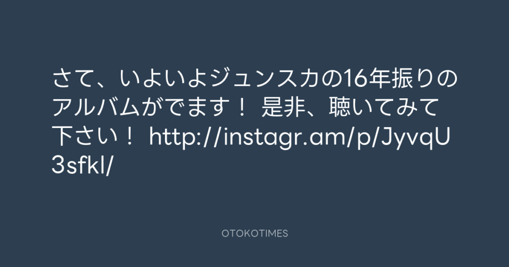 さて、いよいよジュンスカの16年振りのアルバムがでます! 是非、聴いてみて下さい! -