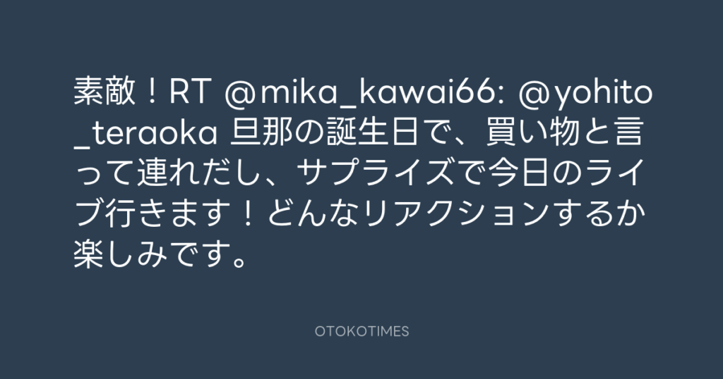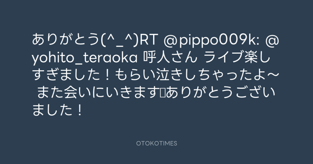 ありがとう(^_^)RT @pippo009k: @yohito_teraoka 呼人さん ライブ楽しすぎました!...