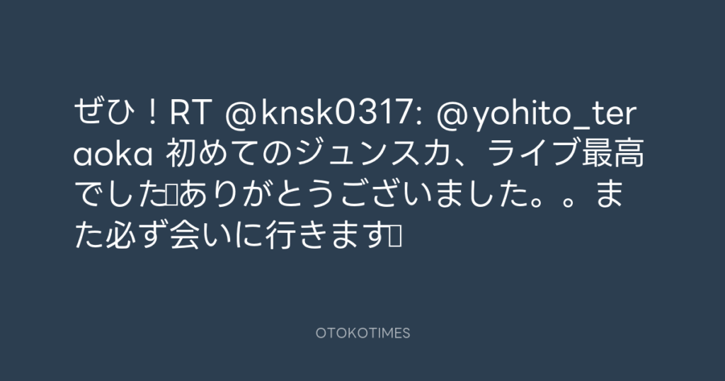 ぜひ!RT @knsk0317: @yohito_teraoka 初めてのジュンスカ、ライブ最高でした♪あり... -