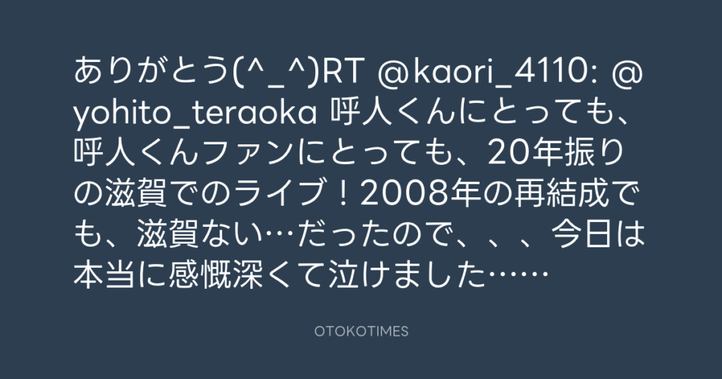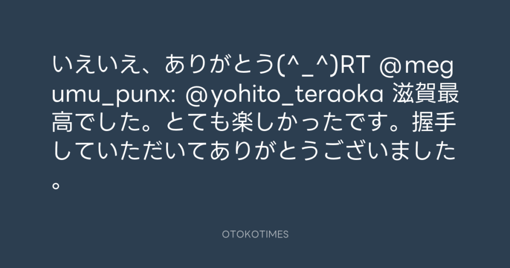 いえいえ、ありがとう(^_^)RT @megumu_punx: @yohito_teraoka 滋賀最高でした。と... -
