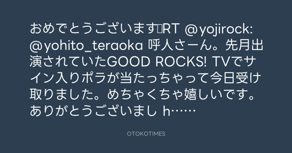 おめでとうございます☆RT @yojirock: @yohito_teraoka 呼人さーん。先月出演されて... -