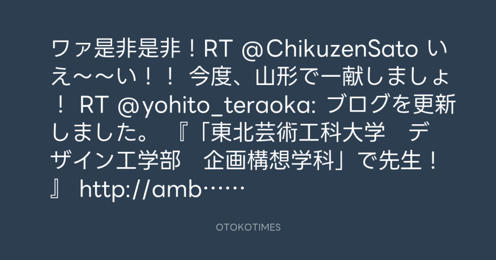 ワァ是非是非!RT @ChikuzenSato いえ〜〜い!! 今度、山形で一献しましょ! RT @... -
