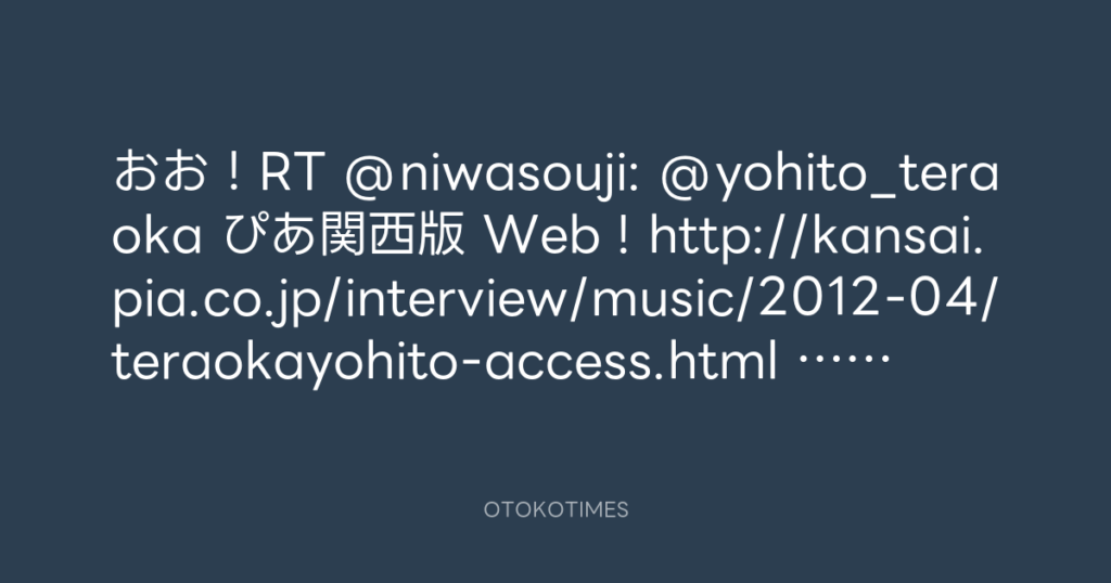 おお!RT @niwasouji: @yohito_teraoka ぴあ関西版 Web ! http://kansai.pia.co.jp... -