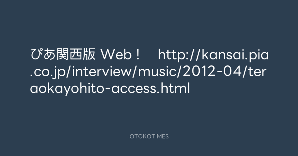ぴあ関西版 Web ! http://kansai.pia.co.jp/interview/music/2012-04/teraokayoh... -