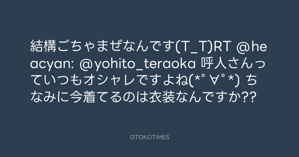いやー、どーかな(T_T)RT @saorigo_: @yohito_teraoka 今日もおしゃれですねっ( `... -