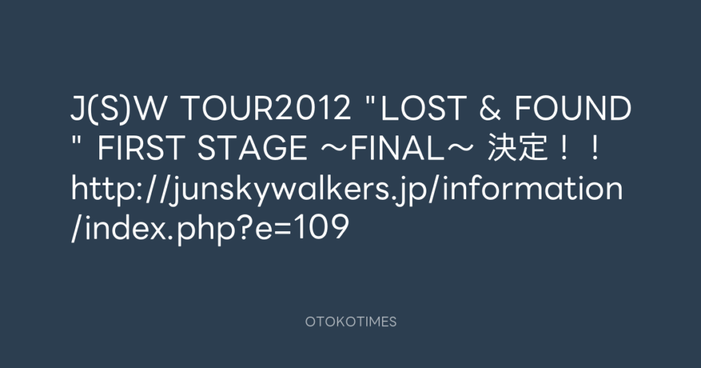 J(S)W TOUR2012 "LOST & FOUND" FIRST STAGE 〜FINAL〜 決定!! http://juns... -