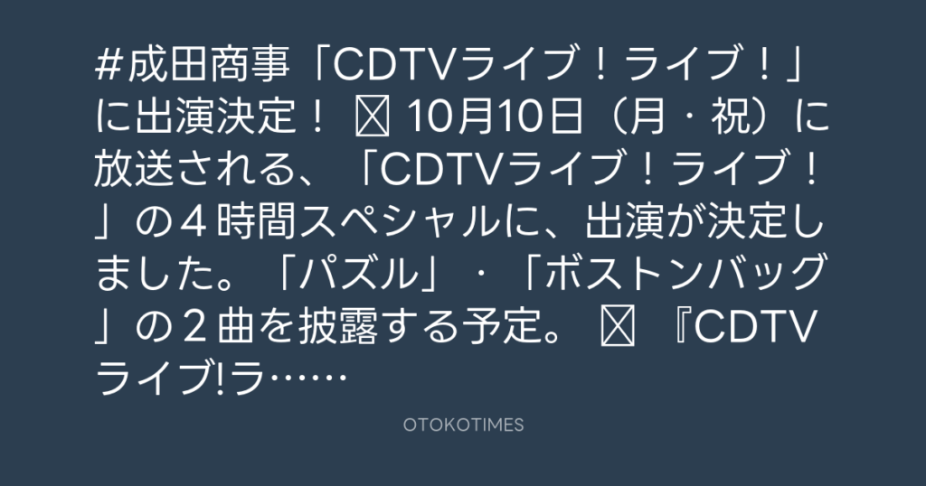 #成田商事「CDTVライブ!ライブ!」に出演決定! 10月10日(月・祝)に放送され... -