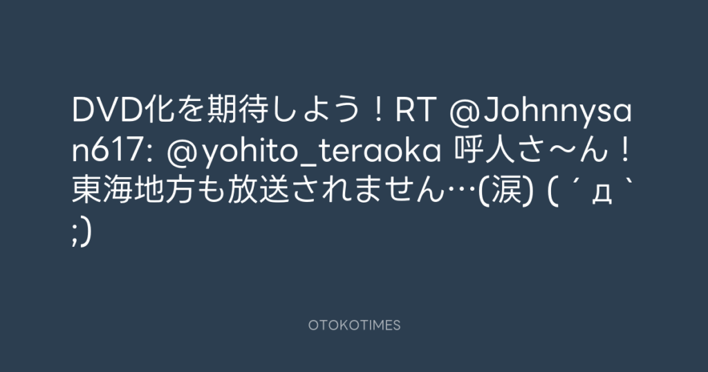 DVD化を期待しよう!RT @Johnnysan617: @yohito_teraoka 呼人さ~ん!東海地方も放... -
