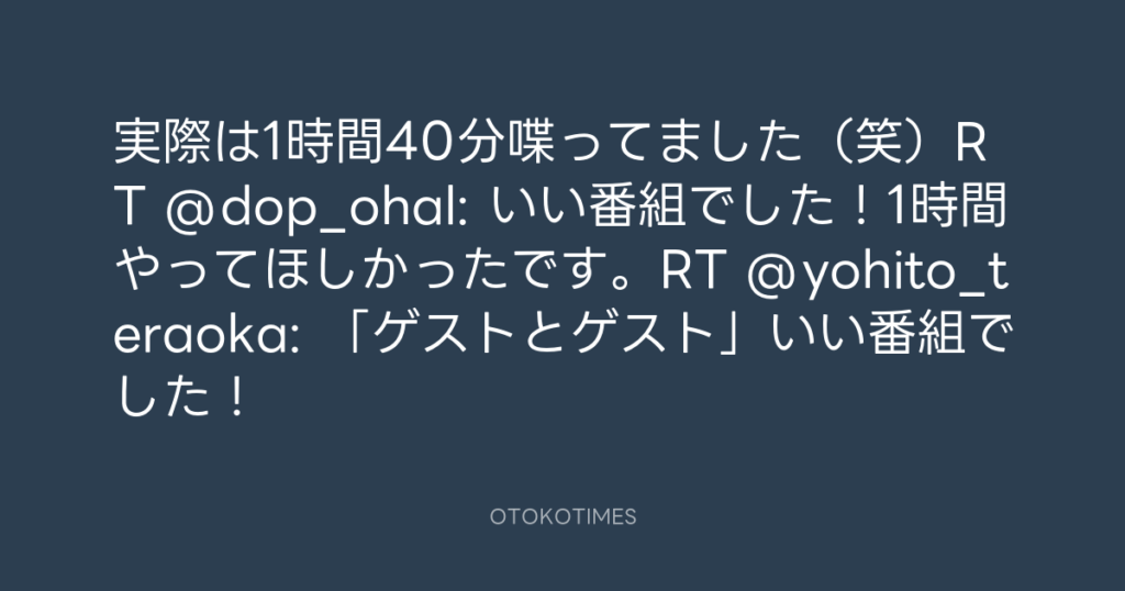 実際は1時間40分喋ってました(笑)RT @dop_ohal: いい番組でした!1時間やってほ... -