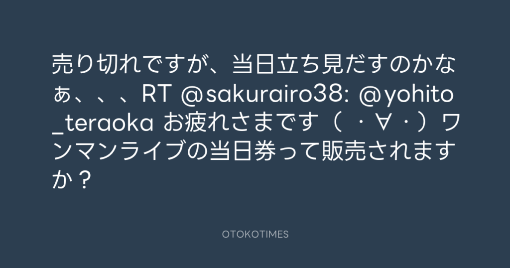 売り切れですが、当日立ち見だすのかなぁ、、、RT @sakurairo38: @yohito_teraoka ... -