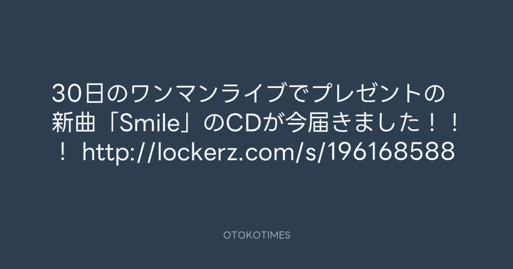 30日のワンマンライブでプレゼントの新曲「Smile」のCDが今届きました!!! http:... -